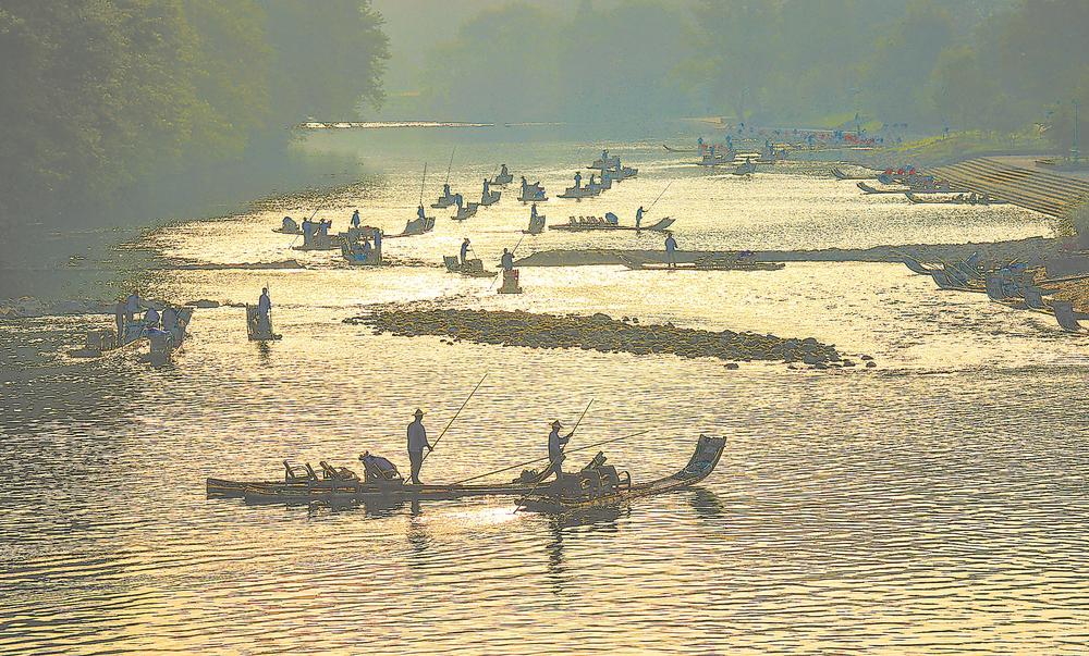 图为人们在武夷山水间泛舟。