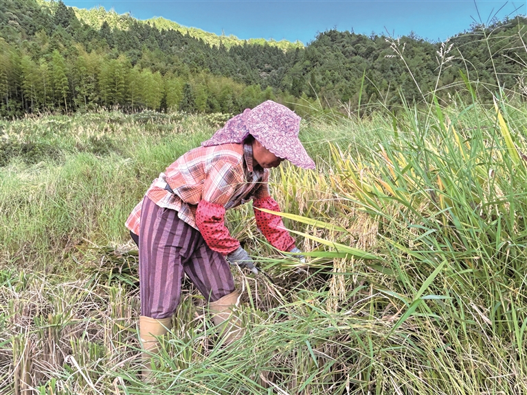 眼下,正值稻谷收割的时节,宁德市屏南县长桥镇柏源村的梯田里,沉甸甸的稻穗随风摇曳,一派丰收的喜人景象。近年来,柏源村始终把保障粮食安全放在重要位置,全村发展种植水稻1000多亩,并依托千亩梯田资源,打造“丰收景致+文化体验”特色旅游模式,通过举办丰收节、农耕体验等活动,激活乡村发展活力。图为农户趁着晴好天气抢收稻谷。