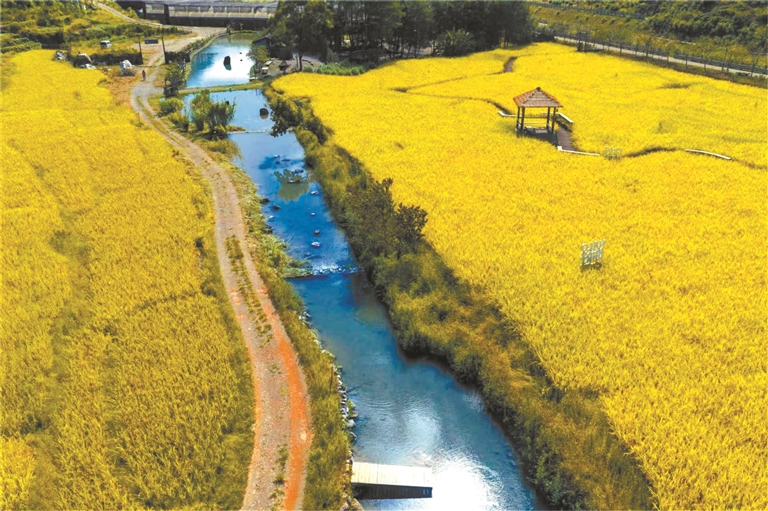 寿山乡白玉村也走出“稻田+”的新路子。秋日的白玉村,百亩稻田一片金黄,吸引大批游客慕名而来。游客们或走进稻田打卡拍照,或在露营基地小憩,享受乡村慢时光。