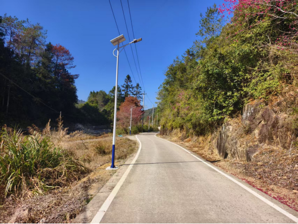 近日,龙岩市永定区湖山乡三来洽溪自然村两项民生工程顺利竣工,为乡亲们送上一份暖心的新春大礼。联通外界的关键路段升级改造及破损路段修复全部完成,125盏崭新太阳能路灯同步投入使用,总价值20余万元,由厦门艾莹服饰有限公司总经理、乡贤李瑾璋捐赠,为村民春节置办年货、走亲访友筑牢出行安全防线。