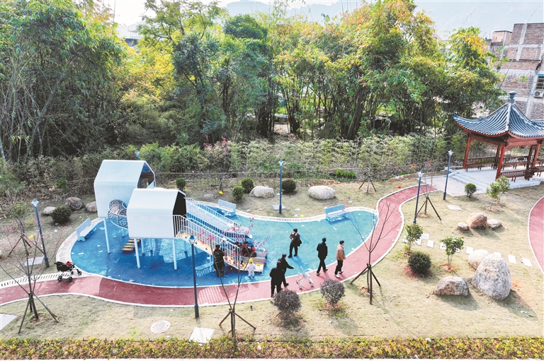 作为金涵畲族乡新春前投用的口袋公园项目,杨梅溪休闲公园集休闲、健身、娱乐功能于一体。园内主路沥青平整,景观绿化错落有致,路灯、石桌坐凳、游乐器材等配套设施一应俱全。同时,公园还依托杨梅溪自然水系打造亲水环境,将昔日闲置空间打造成“家门口”的“幸福乐园”。