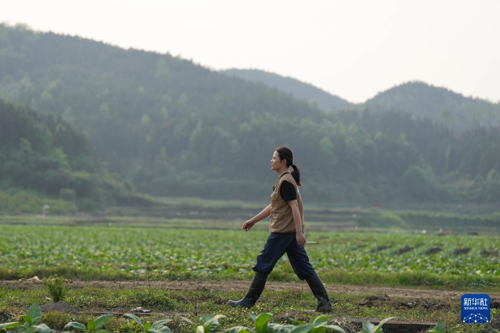 4月9日在湖南省郴州市北湖区华塘镇田间拍摄的骆雨。