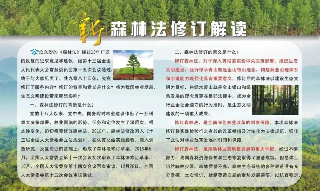 新森林法将为我国林业发展、生态文明建设带来哪些影响?如何保护我们的森林?林木还让不让砍?怎么砍?一起来了解一下吧~