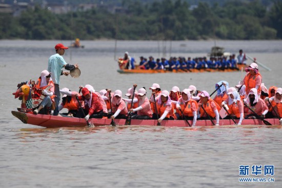 端午节临近,在福建省福州市闽侯县,民间龙舟在大樟溪南港段,以传统龙舟竞渡的方式迎接端午节的到来。