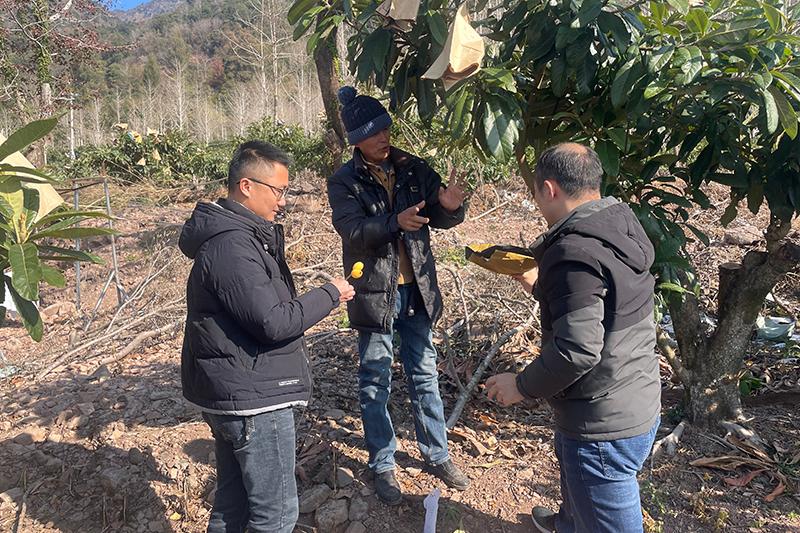 书峰乡党员干部前往田间查看枇杷生长状况