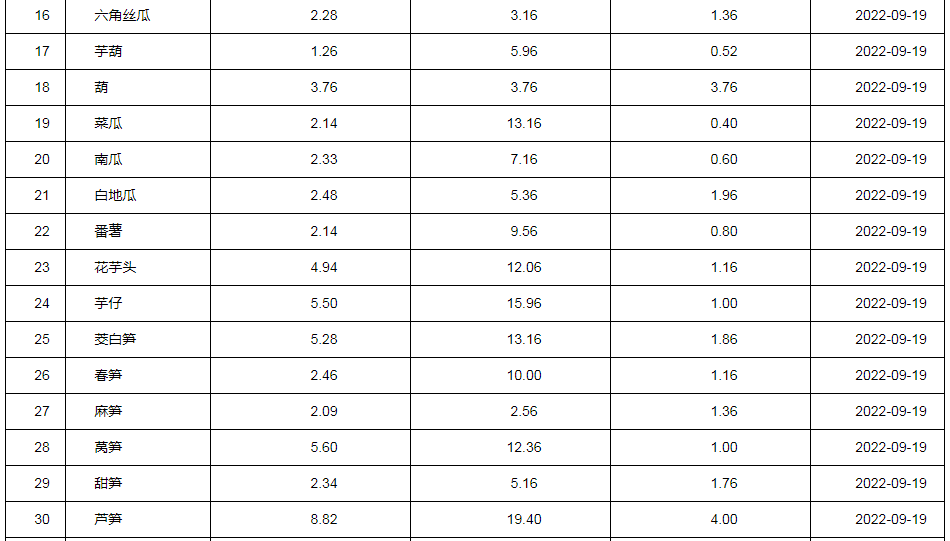 2022年09月19日福建省福州市海峡蔬菜批发市场蔬菜价格