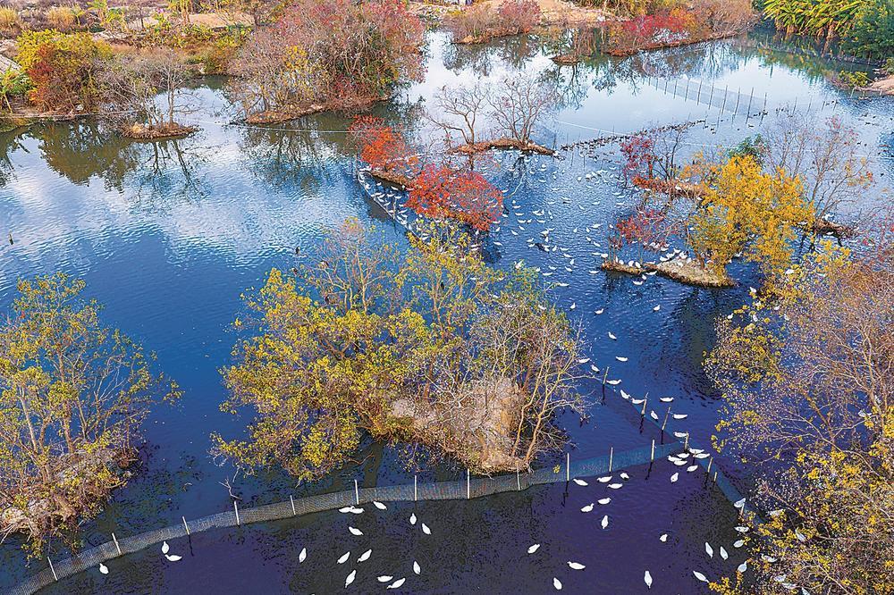 碧波澄澈 水鸟翔集