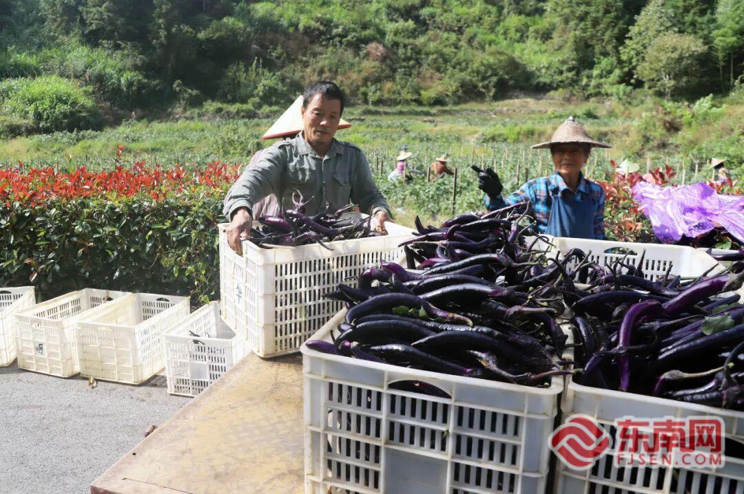 眼下,浦城县管厝乡党溪村的70余亩茄子喜迎丰收。10月29日,连片的田地里,村民们正忙着采收,紫亮的茄子于翠绿的叶片间若隐若现。不远处的棚子下,几位村民正熟练地将刚摘的茄子分拣、装箱,准备发往浙江龙泉等地。这片6月初开始采摘的茄子地,将持续至11月中旬,预计总产量60余万斤。