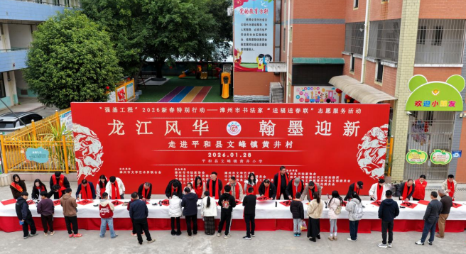1月28日,漳州市“龙江风华 翰墨迎新”书法家送福送春联文明实践活动在平和县文峰镇黄井村温暖开展。活动以笔墨传递祝福,以文化凝聚人心,生动营造喜迎新春、文明祥和的节日氛围,进一步丰富基层群众精神文化生活。