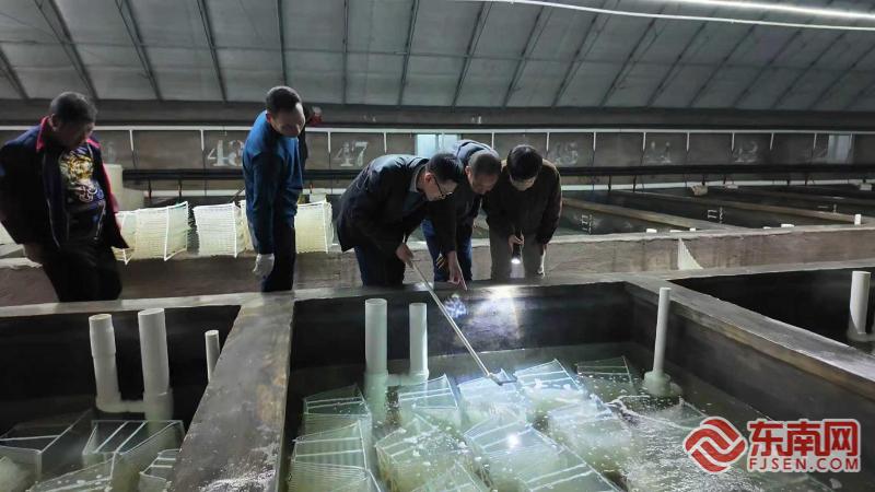 技术人员现场查看海参苗生长情况。霞浦县融媒体中心 供图