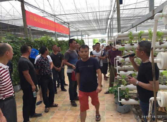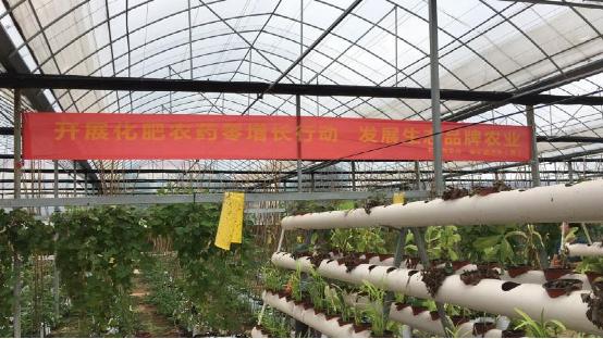 观摩大棚设施生产,普及化肥农药零增长、农业环境保护等生态农业发展知识