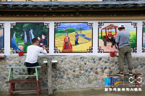 坪水村在美丽乡村建设当中,在村民新居外墙画上彩色图案,充满畲乡风情。新华网 肖和勇 摄