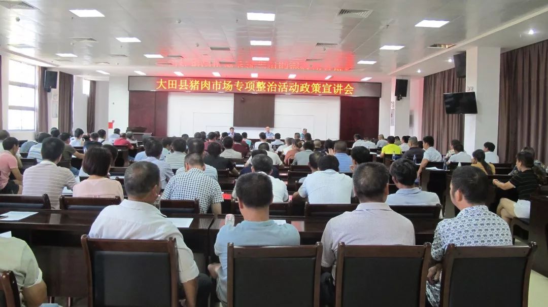 近日,大田县畜牧兽医水产中心与市监督管理局、公安局、城市管理行政执法局、商务局等部门联合开展肉品市场安全专项整治行动。