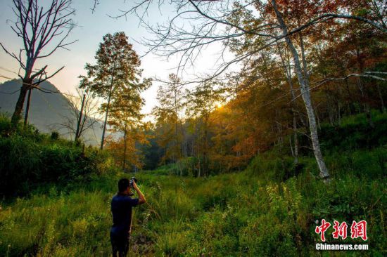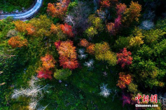进入10月,随着气温降低,闽南地区深山的红叶好像比往年红得更早了些,层层山峦次第披上多彩的外衣,显得异常美丽。近日,在福建省泉州市德化县桂阳乡洪田村与杨梅乡安村村交界的牛母岐周围山场,远远望去,红的、黄的、粉的等多种颜色点缀着广袤的绿林,其间还夹杂着银白色的树干,呈现五彩斑斓的景色,宛如一幅色彩鲜艳的油画,壮美极了。黄谷莹 摄