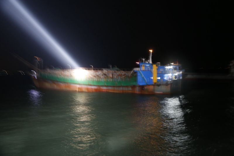22日凌晨2时,在白犬列岛附近海域发现涉嫌违法采砂船