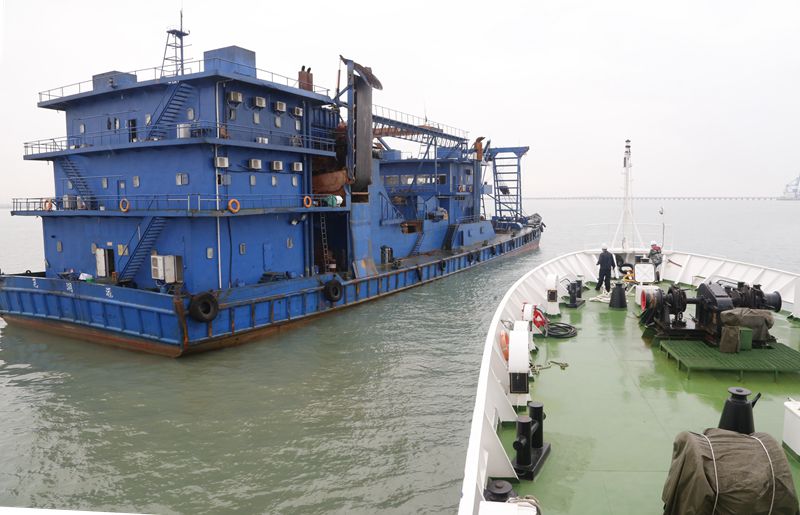中国海监8002船强制靠帮涉嫌违法采砂船