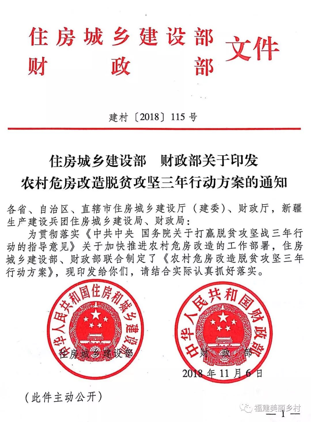 住建部 财政部印发《农村危房改造脱贫攻坚三年行动方案》