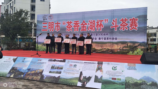 由三明市农业农村局、泰宁县政府联合举办的 “茶香金湖杯”斗茶赛于2018年12月30日在泰宁状元文化广场举行,本次斗茶赛共征集到全市各类茶样163支,分为闽南乌龙、闽北乌龙、台式乌龙及红绿白茶五个组,审评参照GB/T23776—2009《茶叶感官审评方法》,分茶类随机编号、密码审评。通过专家审评,清流县三家茶企选送4支茶样参加了比赛,并获得二金一银的好成绩。其中福建悠然国农业旅游有限公司的忆悠然铁观音、福润茶厂的福晔铁观音获闽南乌龙清香型铁观音金奖,福建省苏福茶业有限公司的梦园龙井获绿茶银奖。