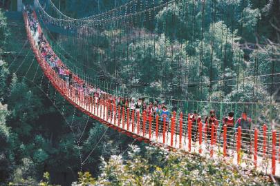3月6日,位于尤溪县汤川乡的4A级景区“侠天下”景区里,我省首座跨山玻璃桥吸引了众多游客前来体验万丈深渊凌空过的“心跳之旅”。据统计,周末两天,这个景区共迎来大巴车200多辆、自驾车1200多辆,接待游客1万多人。