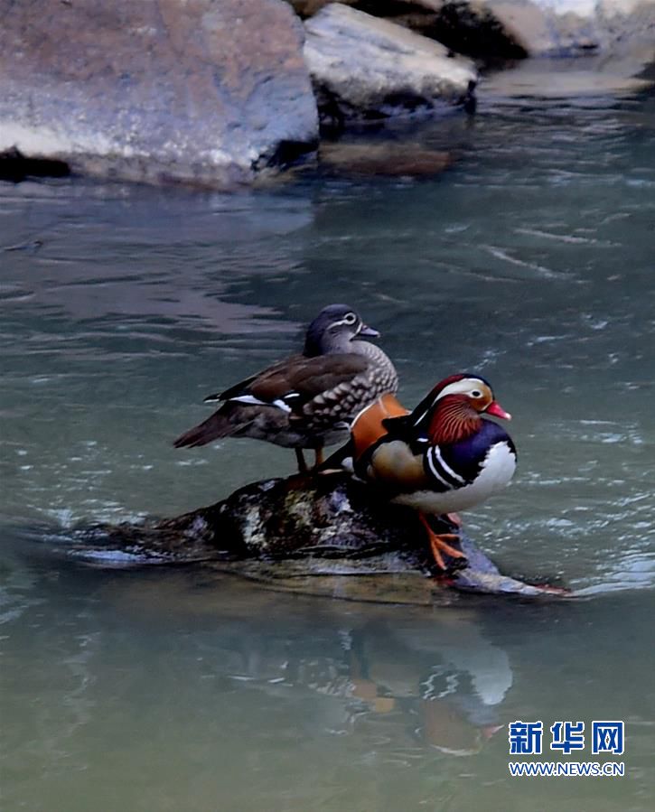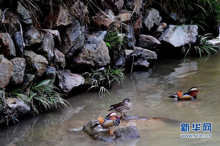 3月17日,几只野生鸳鸯在古田县大甲镇邹洋村戏水。近日,福建省古田县大甲镇邹洋村迎来30多对野生鸳鸯。