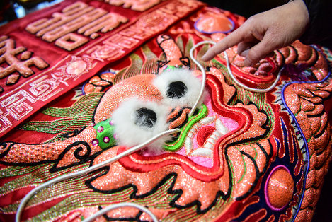 绣制的龙头平凸有致,犹如3D画般栩栩如生,需要一定的绣功 东南网 林婕 摄