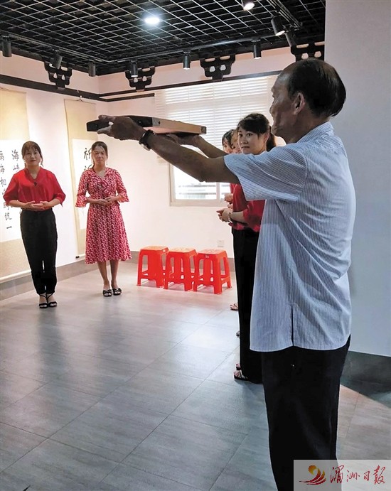 图为林洪国现场讲解妈祖信俗的礼仪规范。