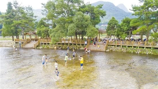 陈斌 摄 图为游客们在仙水洋景区戏水游玩