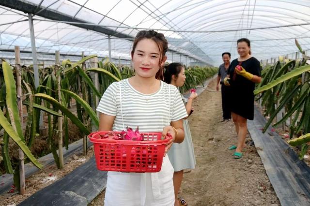游客正在采摘火龙果