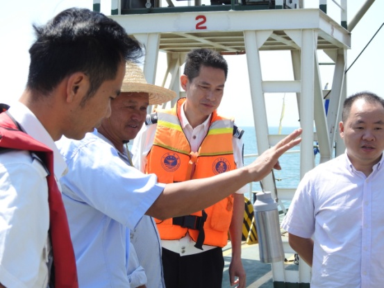 服务队一行人员实地察看了“振渔1号”深海养殖平台运转情况和科学高效养殖操作模式,听取了项目业主对“振渔1号”有关情况的介绍,随后进行了座谈,详细了解该项目在养殖生产过程中存在的问题与困难。