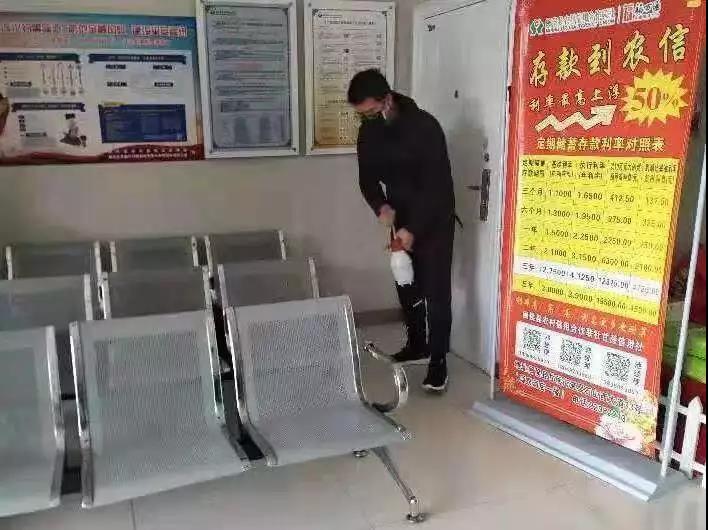尽管客流减少,但闽侯县农信联社承担支付使命、轮流值守的一线员工,仍全部佩戴了口罩、手套等防护用具,及时对柜面、自助机具、取号机、密码键盘、桌椅地面、点钞机、扎钞机、款箱等触摸处进行消毒,确保不留死角、不留空白;引导客户使用口罩并保持1米以上安全距离,网点厅堂全程滚动播放防疫宣教视频。