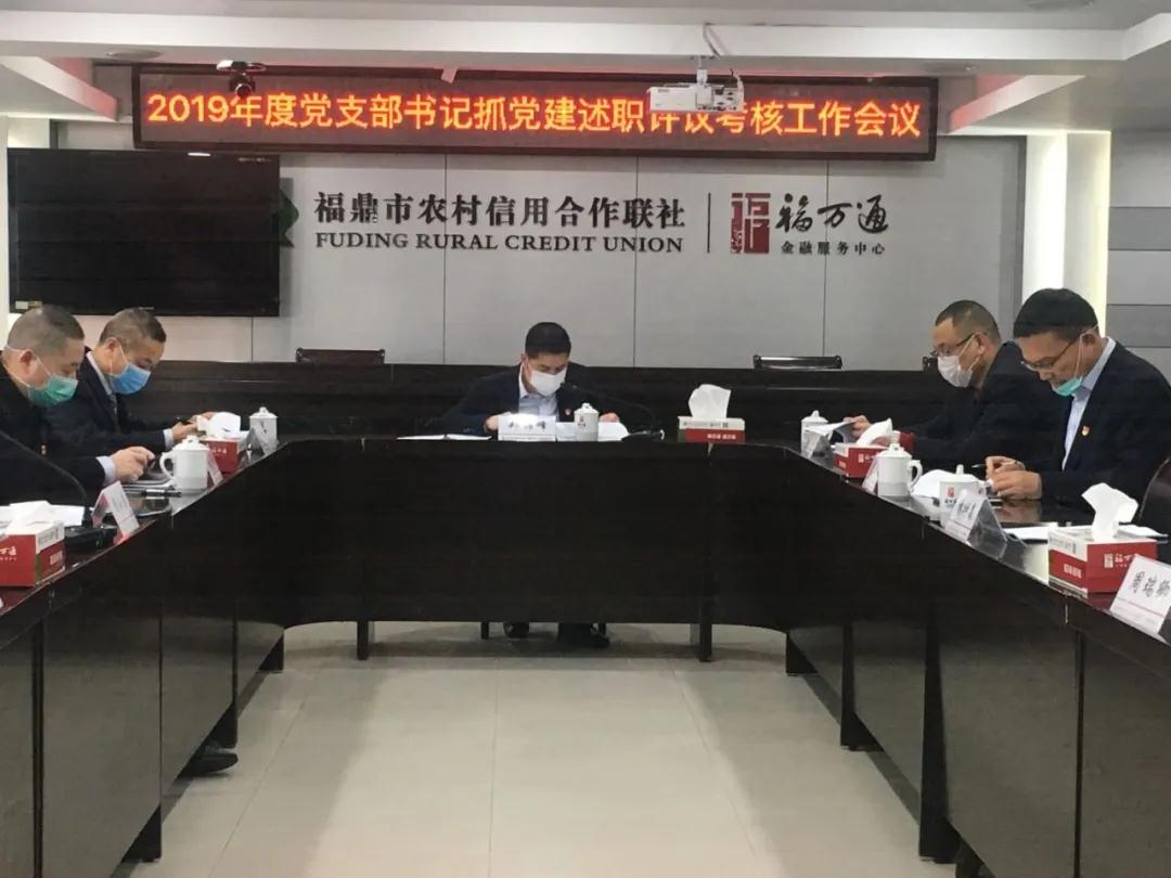 为深入学习贯彻习近平新时代中国特色社会主义思想和党的十九大精神,切实加强党的政治建设,履行管党治党主体责任,推进全面从严治党向基层延伸,按照省联社党委统一部署,2月25日,福鼎联社党委采用现场会议和视频会议相结合的方式,召开2019年度基层党组织书记抓基层党建述职评议,福鼎联社党委班子成员、城内各支部书记、机关各支部支委及党务人员在联社七楼会议室参加了本次会议,其他支部支委及党务人员以视频形式参加会议,会议由联社党委委员董伦山主持。