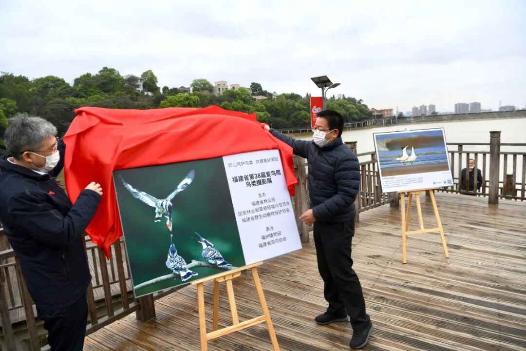 ▲陈照瑜局长(右)和王剑波专员(左)共同为鸟类摄影展揭幕