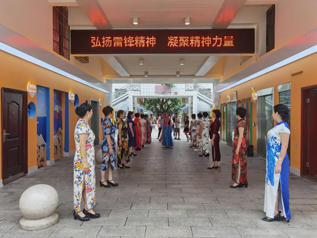 文艺志愿者在文化长廊排演旗袍走秀
