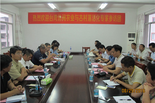 2016年8月28日-9月1日,台湾虎尾科技大学文理学院院长、休闲遊憩系教授侯锦雄博士;台湾师范大学地理系教授李素馨博士、中华海峡两岸交流协会理事长周张德堂先生、国立台湾科技大学建筑研究所建筑文化研究室台湾乡村古建筑专家陈勤忠先生、台北植物园朱丽萍博士、台湾中华大学景观系景观设计师曹明利先生、台湾恒扬工程顾问有限公司黄斌书博士等一行到龙岩市开展为期5天的参访交流。参访团深入我市永定区古竹乡南华山、瑶下村和大德村非世遗土楼群、连片梯田和红柿种植地、寨下水库进行考察新农村建设、开展农村社区总体营造规划评估、交流座谈等;前往漳平市溪南镇东湖村考察乡村休闲农业、并就古村落活化与当地进行座谈、洽谈合作事宜;前往漳平台创园官田岳山茶场、台品樱花茶园、鸿鼎茶场、十里花街、西山鳌头自然村古民居、李庄长青楼等地进行考察走访、交流。考察团专家对考察点的休闲农业与古村落活化等方面提出了许多独到的见解、建议,并就今后开展两岸交流合作达成多项合作意向。省海峡两岸农业合作交流服务中心王举阳副主任陪同考察。