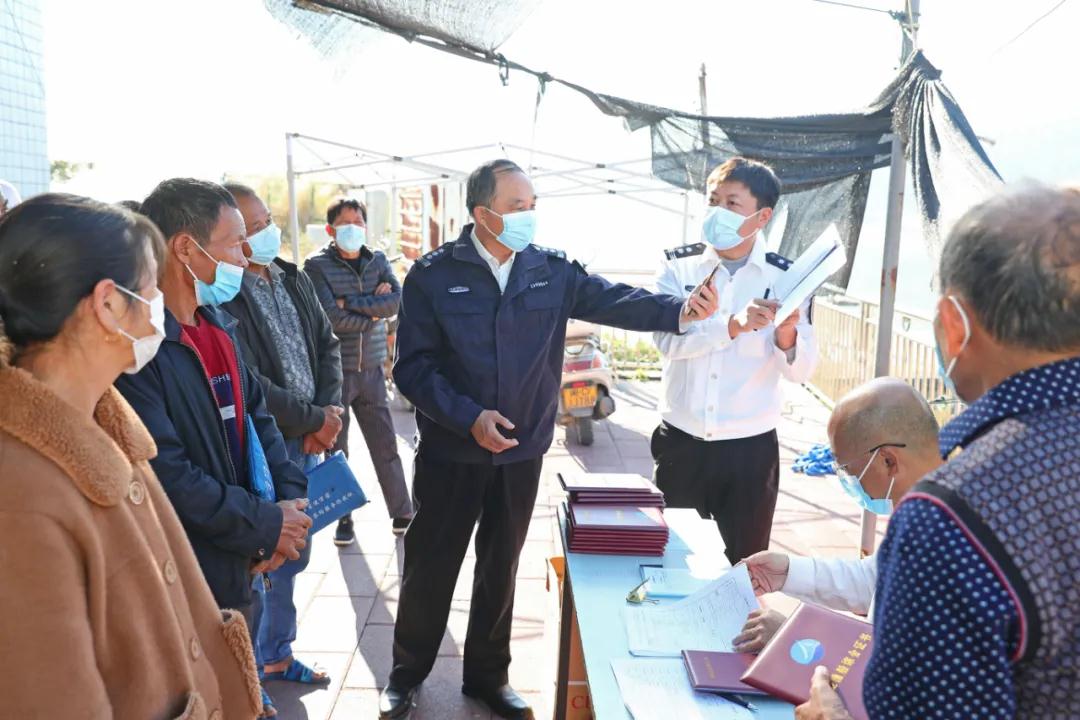 在岸边、村头的一块小空地上工作人员就能为渔民朋友办理相关手续