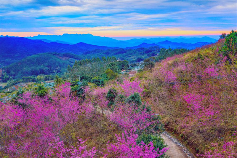 漳州云霄山野樱花迎春绽放 连绵成一道似锦云霞