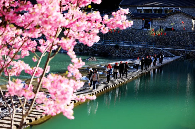 行走在大溪头,河道边,老宅前,桥头旁,樱花处处盛放。兰花大棚里,形态各异的兰花花姿风雅卓绝,香味浓郁,引人陶醉。大溪头俨然成了一个美丽的大花园。