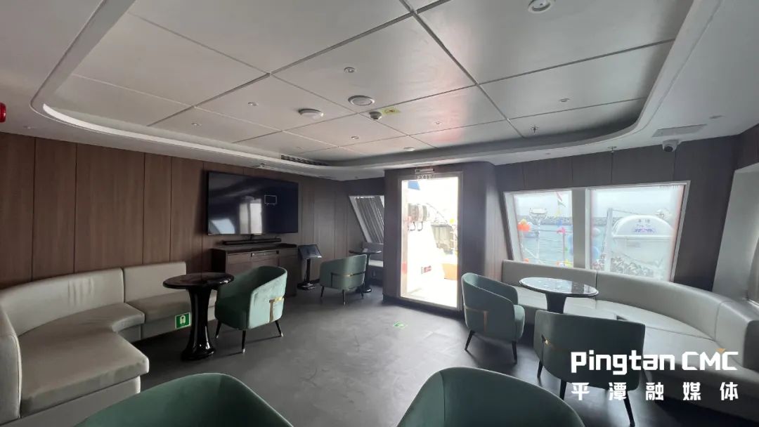 据了解,“海坛1号”是由福建平潭海上观光游轮有限公司斥资约3000万打造的一艘双体旅游客船,总长43.5米,型宽12米,抗风等级为8级,额定载客数为290人。游船共有三层,分别为互动体验层、休闲娱乐层和观光打卡层,船内采用了先进的声光电技术,可为游客提供体感遥控、人屏互动、智能拍照等体验。