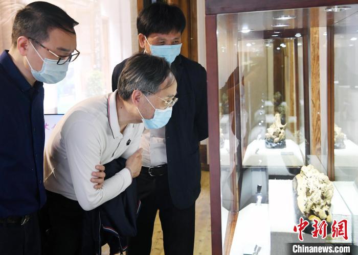 “木竹报春”艺术作品展在福建省海峡民间艺术馆开展。图为中国工艺美术大师郑春辉参展木雕作品吸睛。 刘可耕 摄