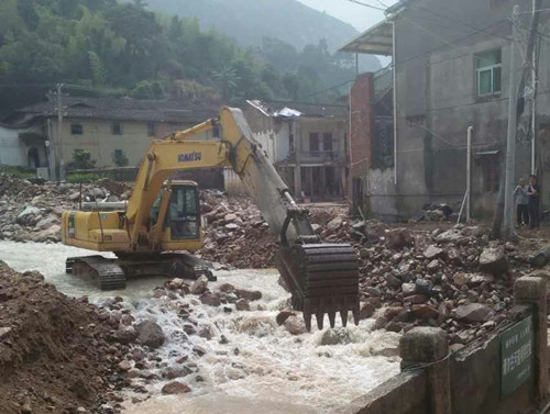 17号台风鲶鱼带来了高强度的降雨,福州地区多处爆发洪灾,台风造成河流水位陡增,部分地区山体冲刷、河道积淤情况严重。闽清县挡板中桥便道被冲毁,思源桥河面淤积大量树干和沙石,对当地的居民区和桥梁安全形成威胁。应当地县委、县政府的要求,项目部紧急成立救灾抢险突击队,着手挡板中桥便道的修复工作和思源桥河面清理、疏通工作。