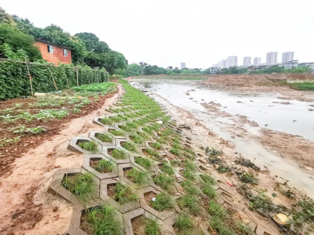 “这种‘生态砖’学名叫混凝土生态驳岸六角块,是一种护坡模具,内部空心,可以实现生态修复和保护护坡双重功能。”该项目负责人介绍,铺设了“生态砖”后驳岸既可以保证水土不被冲刷流失,又能在内部栽培水生植物,一举两得。