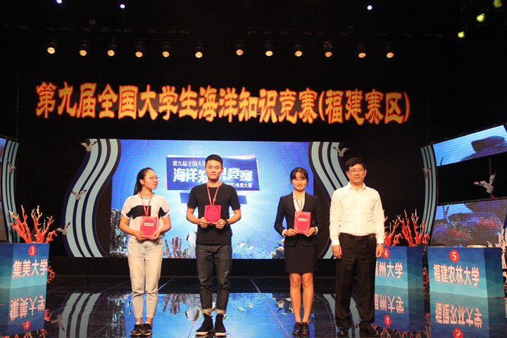 13日下午,由福建省海洋与渔业厅、共青团福建省委员会联合主办第九届全国大学生海洋知识竞赛(福建赛区),在福建晋江举行电视总决赛。当天,厦门大学夺得团体赛冠军,集美大学诚毅学院和集美大学分别为团体第二名和第三名。厦门大学李悠然、集美大学钱露薇、美大学诚毅学院汪鹏荣获“最佳选手”,将代表福建赛区参加全国总决赛。