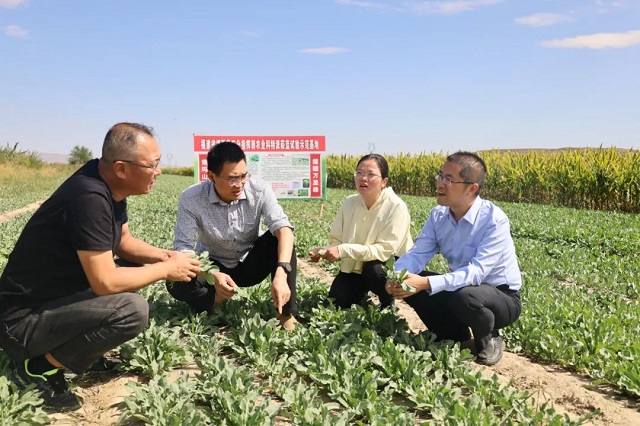 近日,玛纳斯县委副书记、莆田援疆指挥长陈锋再次带领莆田农业援疆专家走进清水河乡坎苏瓦特村特色中药材产业种植基地指导菘蓝养殖。基地里40亩菘蓝和200亩制种玉米长势良好,即将迎来丰收。