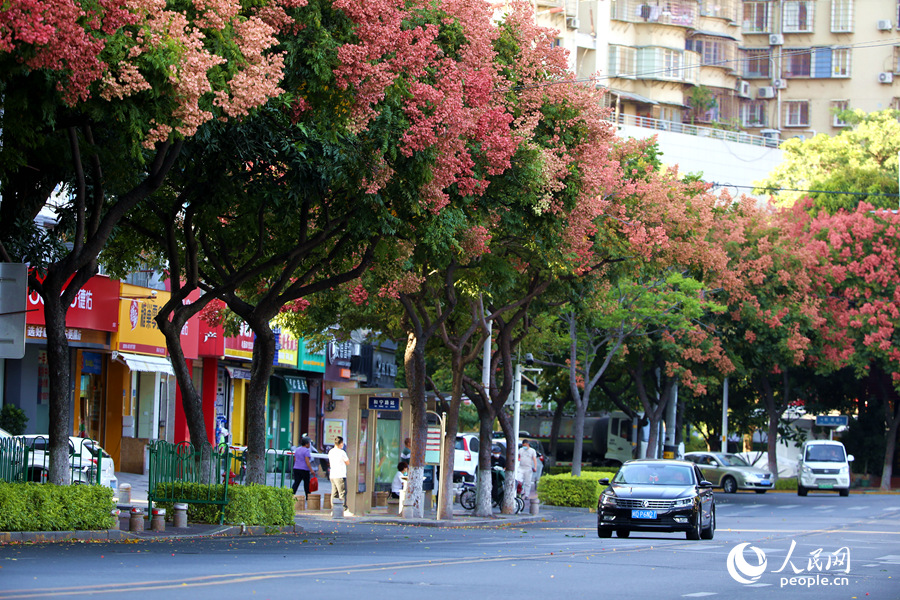 厦门市和宁路两侧五彩缤纷的台湾栾树。 陈博 摄