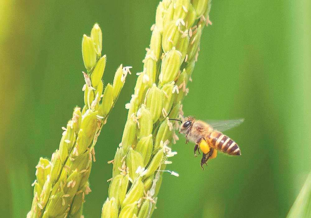 蜜蜂在稻花间穿梭,吸食甜美的花蜜。