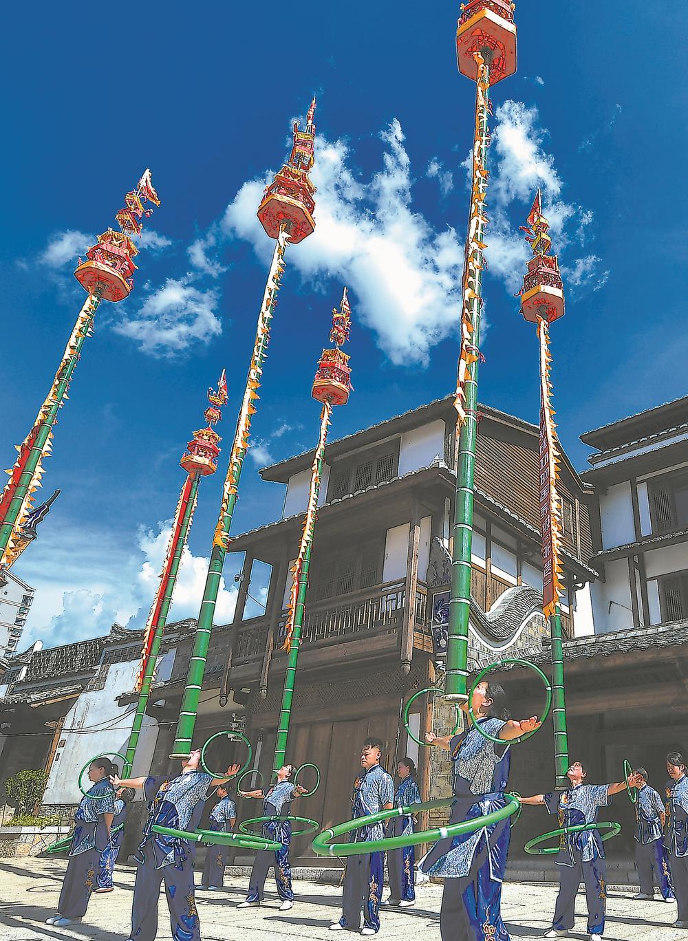 以竹竿为主材的建瓯挑幡是国家级非物质文化遗产代表性项目,经常在各大庆典活动中进行展示。