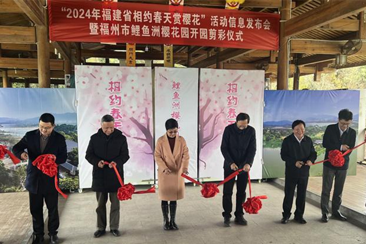 1月27日,“2024年福建省相约春天赏樱花”活动发布会在福州市闽侯县鲤鱼洲樱花园举行。福州鲤鱼洲樱花园也在今日开园。