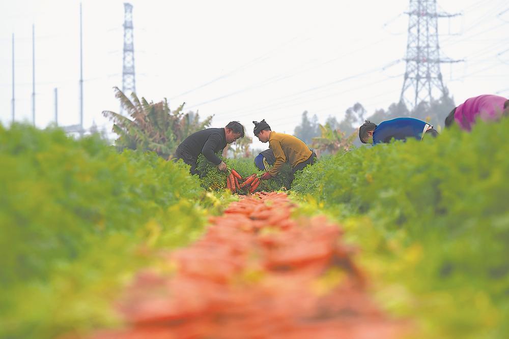 近日,晋江市东石镇的胡萝卜进入采收期,农户在田里采收禧红202水果型胡萝卜。禧红202水果型胡萝卜是拥有“中国芯”的胡萝卜,由中国农科院蔬菜花卉研究所胡萝卜遗传育种团队携手福建福禧种子公司共同培育,突破了国内胡萝卜种子长期依赖进口的瓶颈。如今,每天有近60吨的禧红202水果型胡萝卜远销江浙沪、广东、新疆等地,并出口新加坡、马来西亚、阿联酋等海外市场。